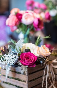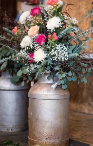 The latest, held this past weekend in Weld, was also one of her biggest, requiring 18 centerpieces, two giant decorative arrangements nestled in rustic milk cans, one large outdoor display, two bouquets for bridesmaids and one bouquet for the bride.