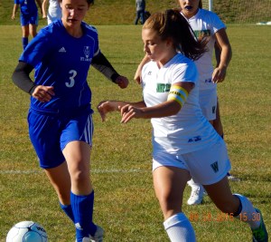 The Roadrunners’ senior co-captain and midfielder Risa Marble slipped her rolling goal past Winthrop senior goalie Shie Smith late in the first half. Summer Ross got the assist on the play.