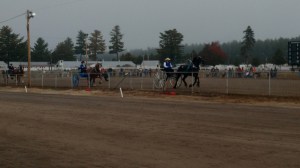 The fair kicked off with the 8:30 a.m showing of draft horses and ponies in the cart class. A large audience watched from the grandstand as draft horses trotted around the center of the racetrack and were judged on their performance and appearance.