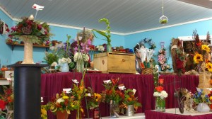The flower shows took place in the Expo 1 building, where Ginny Henshaw-LaBelle and Mary Sanborn of Maine Street Florist and Gifts in Buxton each made 10 displays of flowers for the show. Since there were four flower shows taking place on Wednesday, the two florists had to come up with 40 unique designs. The arrangements were auctioned off after the showing.