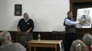 MINOT — Retired police officer Mark Nickerson and retired game warden John Ford Sr. recently addressed the Hebron and Minot historical societies at a combined event at the West Minot Grange Hall.
