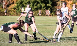 Hornets goalkeeper Hailey DeMascio came up big, making seven saves, most of them coming in the first 10 minutes of the game. Spruce Mountain also had four penalty corner opportunities in that time frame.