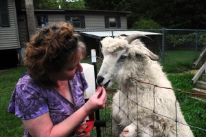 At home, Farr’s husband, who is an electrician and carpenter, raises bees, maintains a large vegetable garden and cares for Dee’s goats. The couple’s two dogs — Droopy, a basset hound and Simeon, a beagle — don’t trip her up.