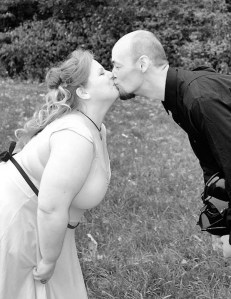 The bridegroom is customer service representative with Dunkin’ Donuts.