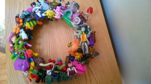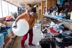Every tidbit has the promise of becoming part of her kingdom, from world globes and blender pitchers that she intends to wire and make into lamps, to masses of minute plastic toys she hot-glues onto Styrofoam circles. “Every parent knows these (plastic toys) reproduce in the bottom of the toy box in the dark,” she said affectionately as she showed off her whimsical wreaths.