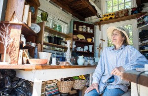 Cutko could very well have a recycling competition going with another Bowdoinham townie, Sarah Stapler. The DIY spirit is alive and well throughout this artist’s home and perennial business. Her adorable garden shed is made mostly from materials she hauled home from the recycling barn and a demolition site next door.