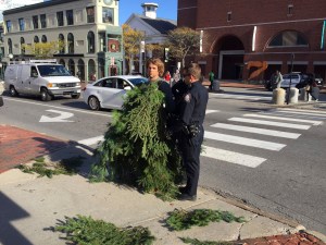 Asher Woodworth tells the Portland Press Herald his embodiment of a tree inching across a busy downtown Portland intersection was designed to reflect a contrast in the “energies of economy and efficiency and the energies of slowness and magic.”