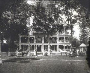 Two early large photographs, one with stagecoach, one with carriages at the Lake House