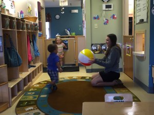 Early in the morning, the teachers feed children breakfast, an opportunity to work with the children on their hand-eye coordination as well as manners. They read and sing to the children, help them play with blocks and balls, talk with even the smallest ones about emotions and help them solve problems when they get frustrated.