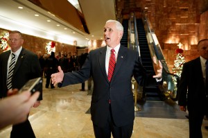 Exiting Trump Tower on Monday night, Vice President-elect Mike Pence simply teased “a number of very important announcements tomorrow.”