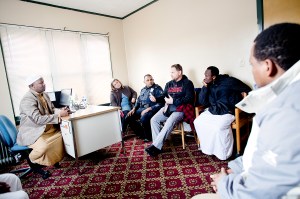 At first glance, the meetings might seem chaotic to an outsider. More than a dozen people are crammed into a small room at the front of the mosque. Some sit, some stand, a few come and go throughout the meeting. There are often multiple conversations going on at once as discussions are translated for those in the room who do not speak English.