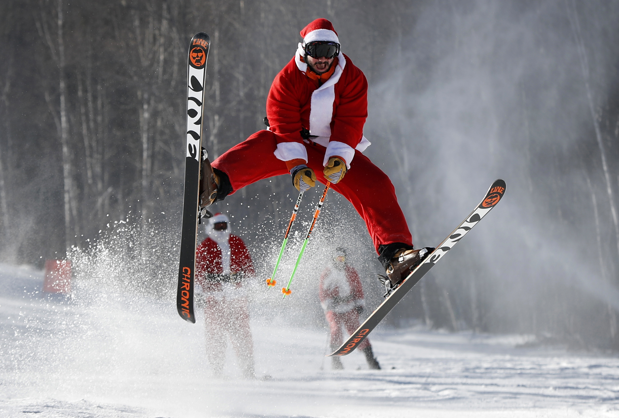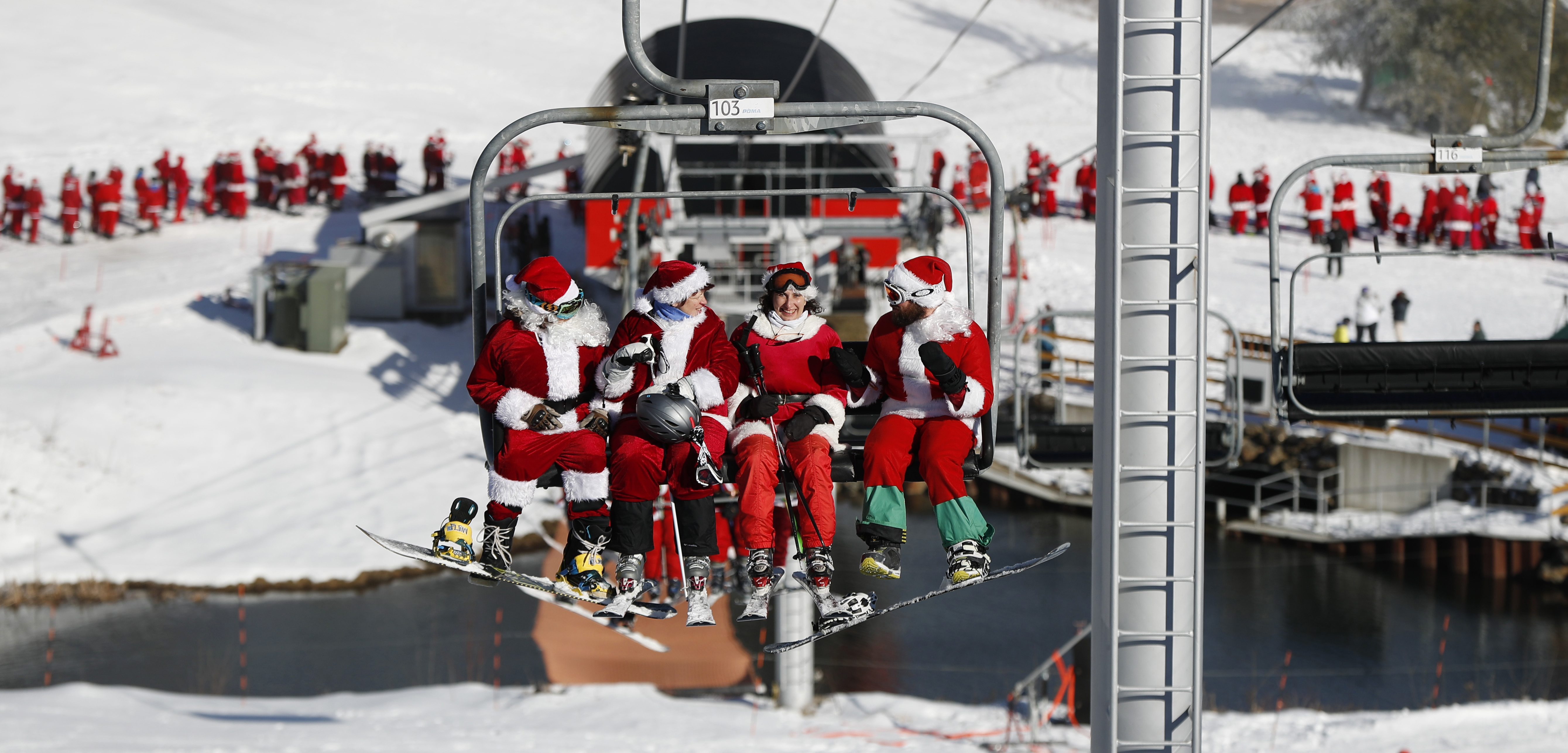 About 180 Saint Nick wannabes participated in the fundraising event hosted by Sunday River that was not for the faint of heart: The group tackled more challenging terrain than the traditional bunny slope during the 18th annual Santa Sunday.