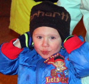 Logan Letarte, 3, of Rumford holds his mittens over his ears as the loud sirens of the fire trucks go by during the Christmas in the Valley Parade Friday night in Rumford.