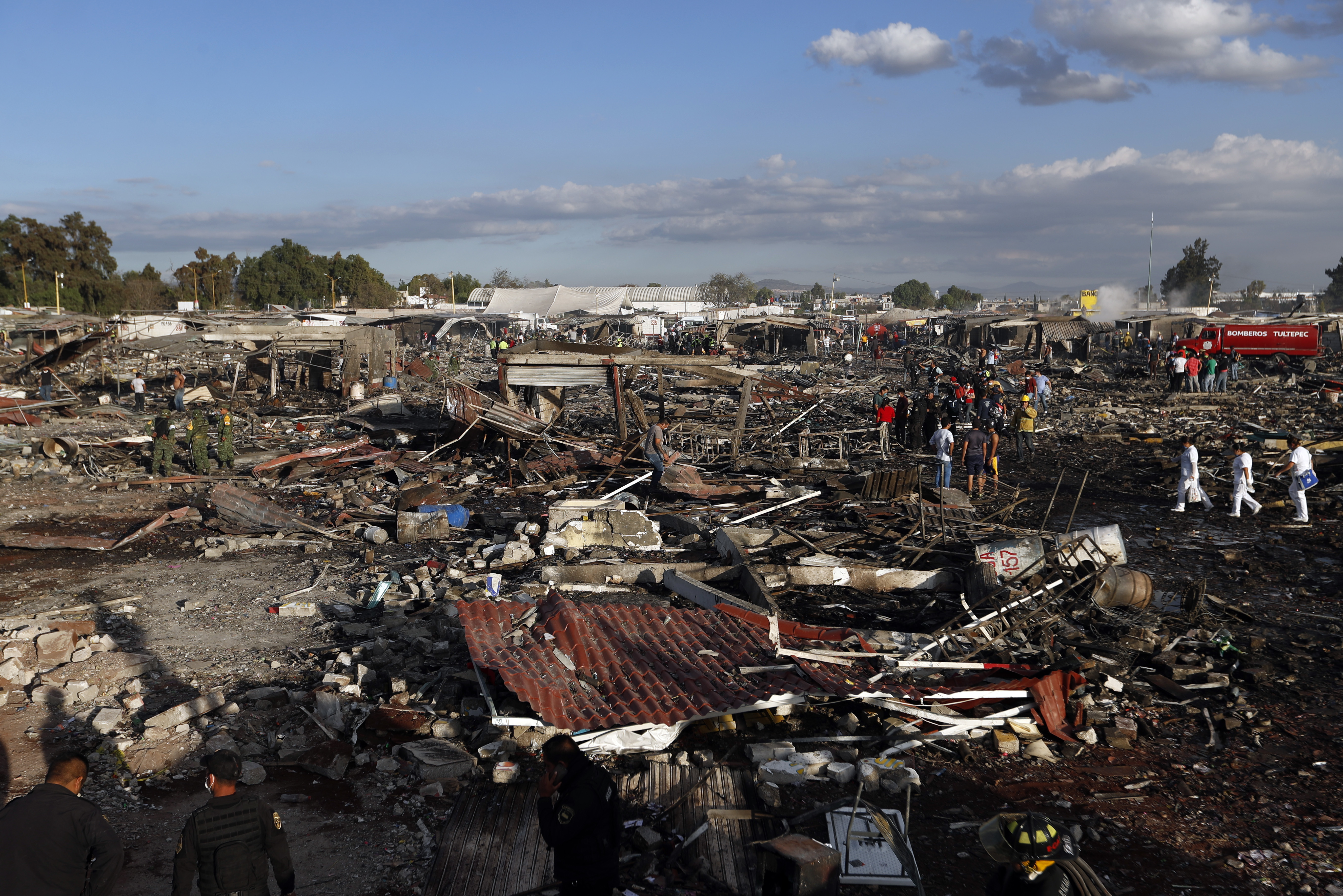 Deadly fireworks explosions have occurred with some regularity in Mexico: In 2002, a blast at a market in the Gulf coast city of Veracruz killed 29; in 1999, 63 people died when an explosion of illegally stored fireworks destroyed part of the city of Celaya; and in 1988, a fireworks blast in Mexico City’s La Merced market killed at least 68.