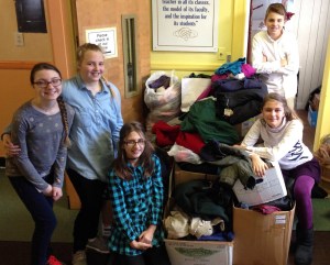 In recent months, students in grades three through six organized a campaign to collect coats, mittens, hats, scarves and other warm clothing for Catholic Charities Maine Refugee and Immigration Services. The collection lasted nearly a month. Thanks to the generosity of school families, parishioners and community members, hundreds of new and slightly used articles of clothing were gathered.