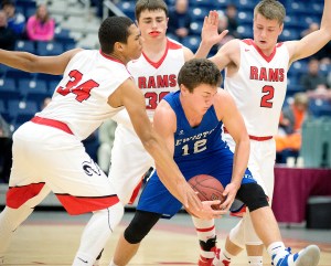 Simon McCormick hit a 3-pointer to spark a 9-0 start to the second quarter for the Rams. The Blue Devils turned it over five times and missed their first four shots before Garrett Poussard (nine points, 11 rebounds) got them on the board midway through the period to make it 30-15.