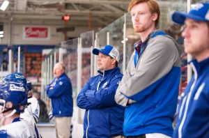 It took a 5-on-3 power play to get the scoring started. Dustin Larochelle put a shot off Fournier and in with just one second remaining on the two-man advantage midway through the first period. That came on the Blue Devils’ 10th shot on goal.