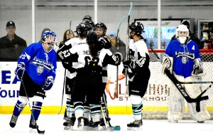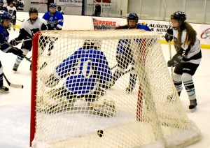 Kristina Cornelio buried the open shot after Gosselin stopped the initial try by Bugsy Hammerton, who had hit the post less than a minute before. The same combination struck again with exactly two minutes left in the first. Gosselin tracked the puck off the left post in a scrum, but couldn’t recover in time for Cornelio’s shot from the right circle. Hammerton fed her puck from behind the net out of the scrum.