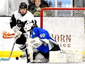 So St. Dominic Academy started working on shooting it when the Lewiston/Monmouth/Oak Hill goalie couldn’t see the puck.