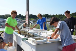 Building the upweller and keeping them underwater in a suspended bag has required the students to get town permits. In addition to learning how to work with local officials and community members, Birkbeck said he and the group have learned “how to effectively find an answer.”