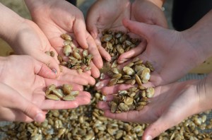 “In a classroom you obviously don’t put your hand in an upweller, pull out a silo, and come face-to-face with a juvenile clam,” Birkbeck said.