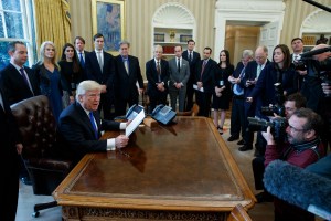 In addition to his executive action on TPP, Trump signed memorandums freezing most federal government hiring — though he noted an exception for the military — and reinstating a ban on providing federal money to international groups that perform abortions or provide information on the option. The regulation, known as the “Mexico City Policy,” has been a political volleyball, instituted by Republican administrations and rescinded by Democratic ones since 1984.