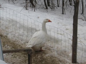 He’ll be at least 15 years old this summer — if not older — and I hope he makes it through at least another year. He’s the last of my original geese that I bought so many years ago. His brother, Sam, was killed by the biggest raccoon I have ever seen, and his sisters, Sally and Susie-Q, have died of unknown causes, although I have my suspicions.