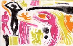 The Unity of Opposites exhibition features the collaboration between two printmaking studios: Zea Mays Printmaking of Florence, Massachusetts, and Peregrine Press of Portland. The two studios created a visual “rip-off” of the childhood game telephone, in an effort to expose real-world issues about communication and interpretation in contemporary culture. The process continued until 75 artists participated over the course of five months; each artist’s response highlights their own perspective on their collaborator’s art.