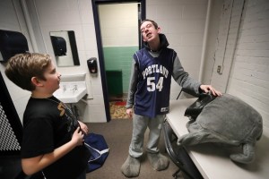 “I watched a couple videos of people being mascots, acting funny and whatnot,” Kamron said in response to questions translated by an ASL interpreter. “I wondered if it was something I could do, and be the first hard-of-hearing mascot of Portland High School.”