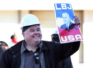 During the ceremony, Luci Baines Johnson singled out an electrician, Larry Stegna, who held an old poster that commemorated LBJ’s campaign in which the Democrat trounced Republican Barry Goldwater.
