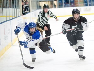 St. Hilaire gave way to junior Meagan Gosselin for the third period to continue the Blue Devils’ season-long trend of splitting net time between their two goalies. St. Hilaire made 23 saves in her two periods of work.