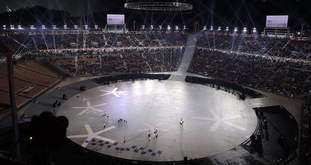 A huge crowd gathered in the freezing Olympics Stadium in this isolated, mountainous corner of South Korea.