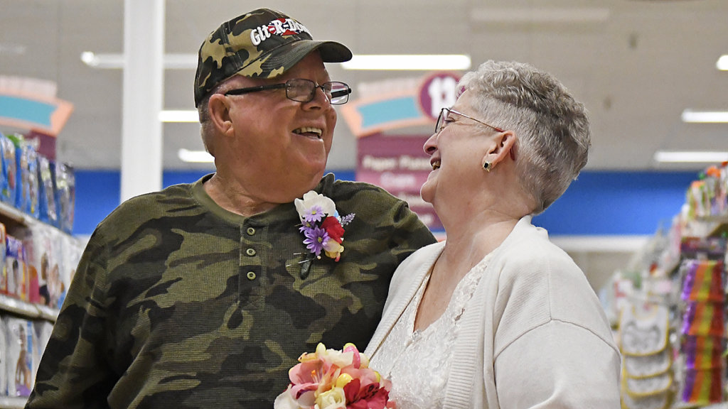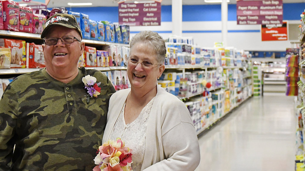 The Valley News Dispatch reported 69-year-old Larry Spiering and 61-year-old Becky Smith married Sunday at the Community Supermarket in Lower Burrell, where they met 10 years ago.