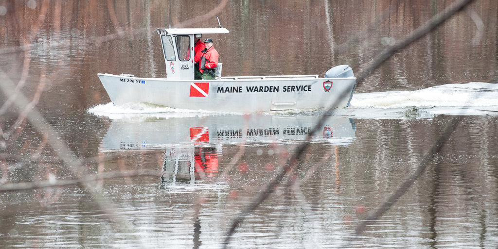 A Maine Warden Service boat searches the Androscoggin River Thursday morning while searching for a 5-year-old boy who fell into the river Tuesday evening in Auburn by Bonney Park. (Russ Dillingham/Sun Journal)