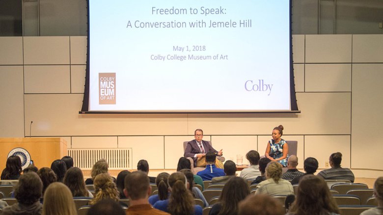 On Tuesday, Hill spoke at Colby College’s Ostrove Auditorium. The discussion, “Freedom to Speak” was a conversation on race, gender and politics in sports and journalism. Hill’s discussion was held in conjunction with the Colby College Museum of Art’s exhibit Game Time: The Sports Photography of Walter Iooss. Hill spoke with Justin McCann, the curator of the Iooss exhibition. Hill and McCann spent an hour discussing a number of social topics and how they relate to sports, as well as answering questions from the audience.