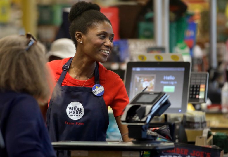 She did snag a job at Whole Foods in Cambridge, Massachusetts, first as a bagger and now as a cashier, making a little more than $11 an hour. But that was after taking English classes and the store basics program developed by the NRF.