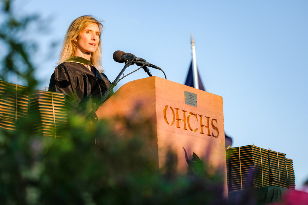 Dr. Molly Ware, a 1991 graduate, instilled in the green-gowned young adults the importance of listening, especially to those they may not agree with, or who are different from them.