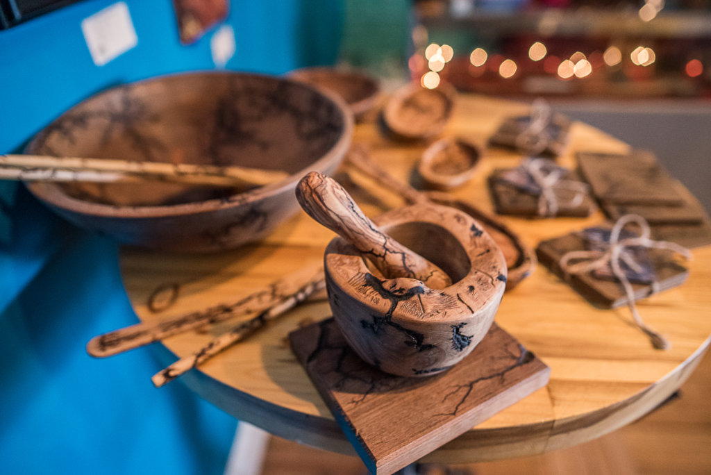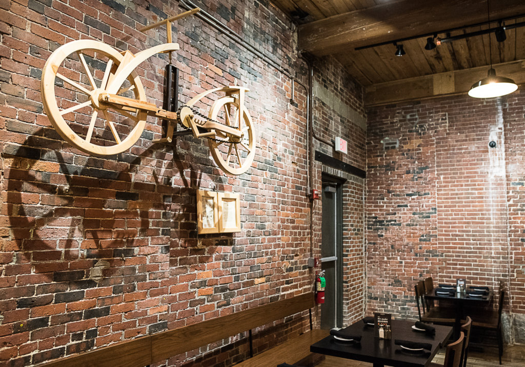 There’s a wooden bicycle hanging in DaVinci’s Eatery. Funky furniture at Bear Bones Beer and Ben’s Burritos. And more, soon, to be placed all over The Curio Art & Alehouse coming to 110 Lisbon St., where Corey is one of three partners.