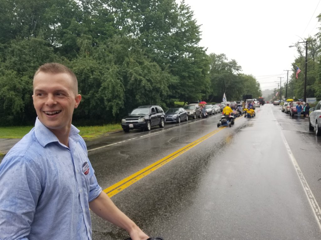For Golden, the rainy parade in Wilton was just another day on the campaign trail — wetter than most, to be sure — that has taken him to a buckwheat farm in Aroostook County, a Down East lobster boat and scores of other places where Mainers struggle to eke out a living.