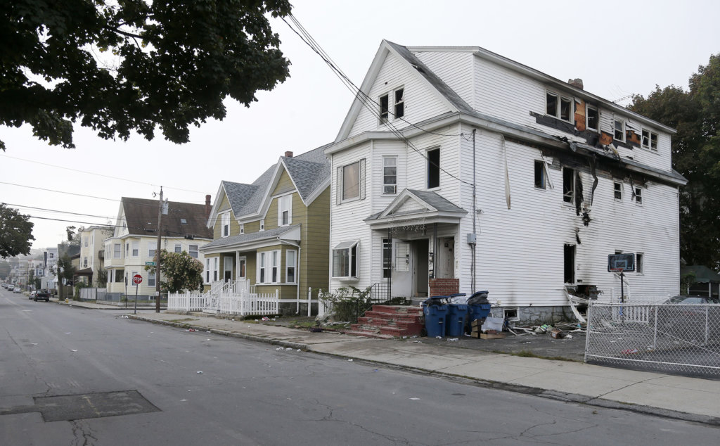 A damaged house on Jefferson Street, in Lawrence, Mass., is seen Friday, Sept. 14, 2018. The home was one of multiple houses that went up in flames on Thursday afternoon after gas explosions and fires triggered by a problem with a gas line that feeds homes in several communities north of Boston (AP Photo/Mary Schwalm)