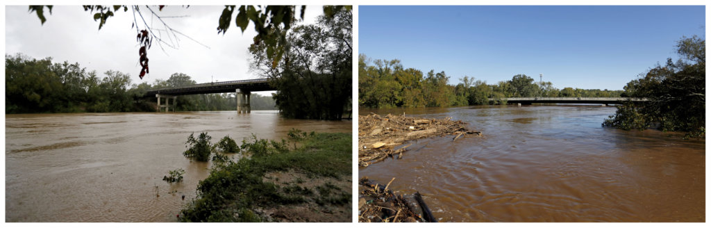 At Fayetteville, about 100 miles (160 kilometers) inland, near the Army’s sprawling Fort Bragg, flooding from Cape Fear River got so bad that authorities closed a vehicle bridge after the water began touching girders supporting the span’s top deck.