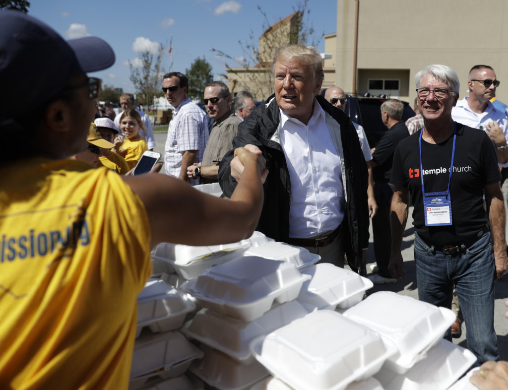 President Donald Trump, meanwhile, arrived in storm-ravaged North Carolina on Wednesday and helped volunteers at a church in the hard-hit coastal town of New Bern.