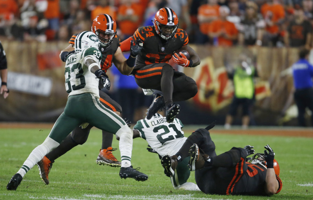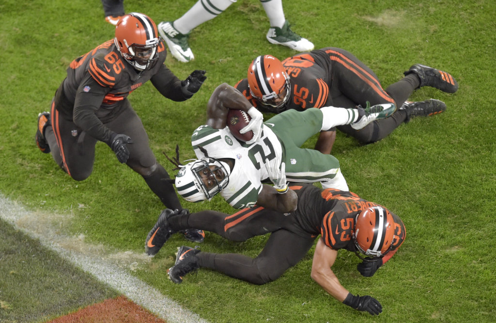 Crowell’s untouched 7-yard run TD run came five plays after Jets linebacker Kevin Pierre-Louis got a hand on Britton Colquitt’s attempted punt and New York took over at Cleveland’s 28.
