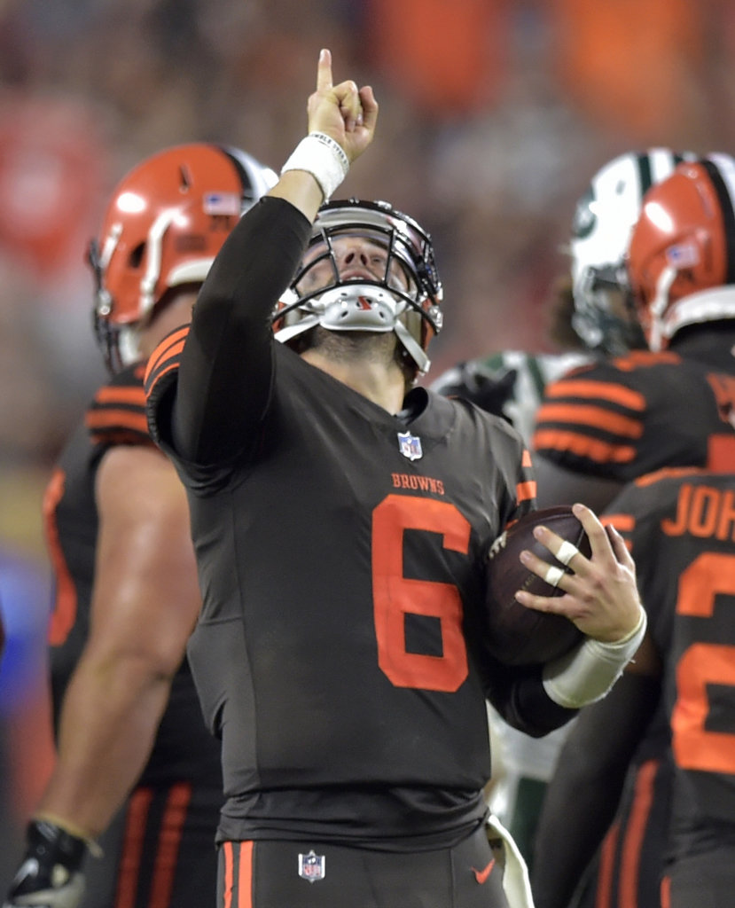 The Browns (1-1-1) trailed 14-0 in the first half before Mayfield came in for Taylor and led four scoring drives while winning an unexpected matchup against Jets rookie quarterback Sam Darnold. Cleveland passed on taking Darnold in the draft and instead chose Mayfield, the Heisman Trophy winner from Oklahoma.