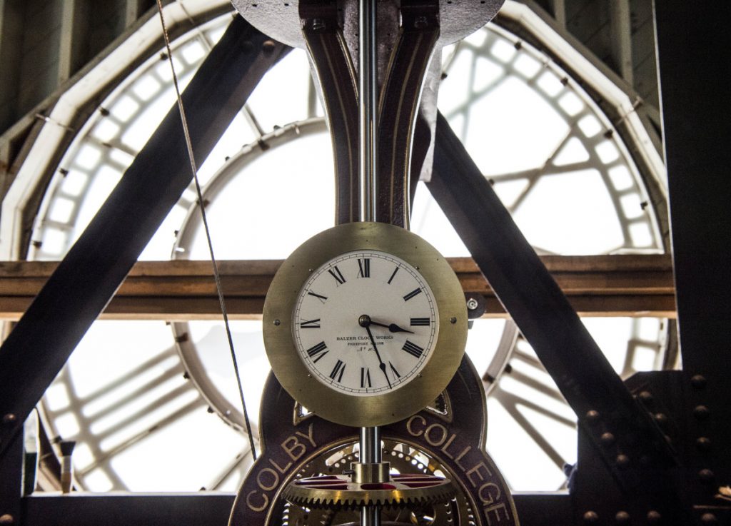 The clock ticks away near the top of the Miller Library steeple at Colby College in Waterville on Aug. 3. The college has decided to eliminate the requirement to submit SAT or ACT scores for admission for the Class of 2023, preferring instead to focus on the overall achievements of applicants, lessen their anxiety and increase access for disadvantaged students. (Michael G. Seamans/Morning Sentinel file photo)
