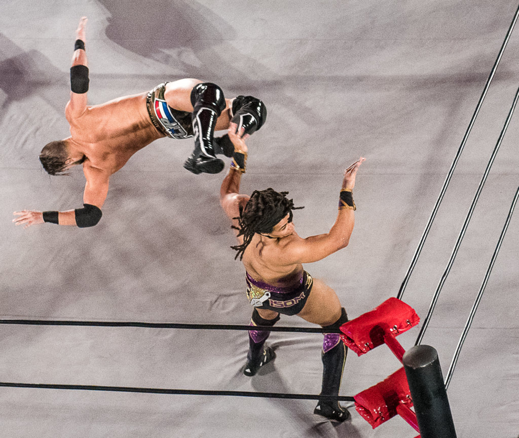 High on the list of anticipated showdowns Wednesday night was a bout between Flip Gordon — whose various flips and contortions seem to defy the laws of physics — and rising star Eli Isom.