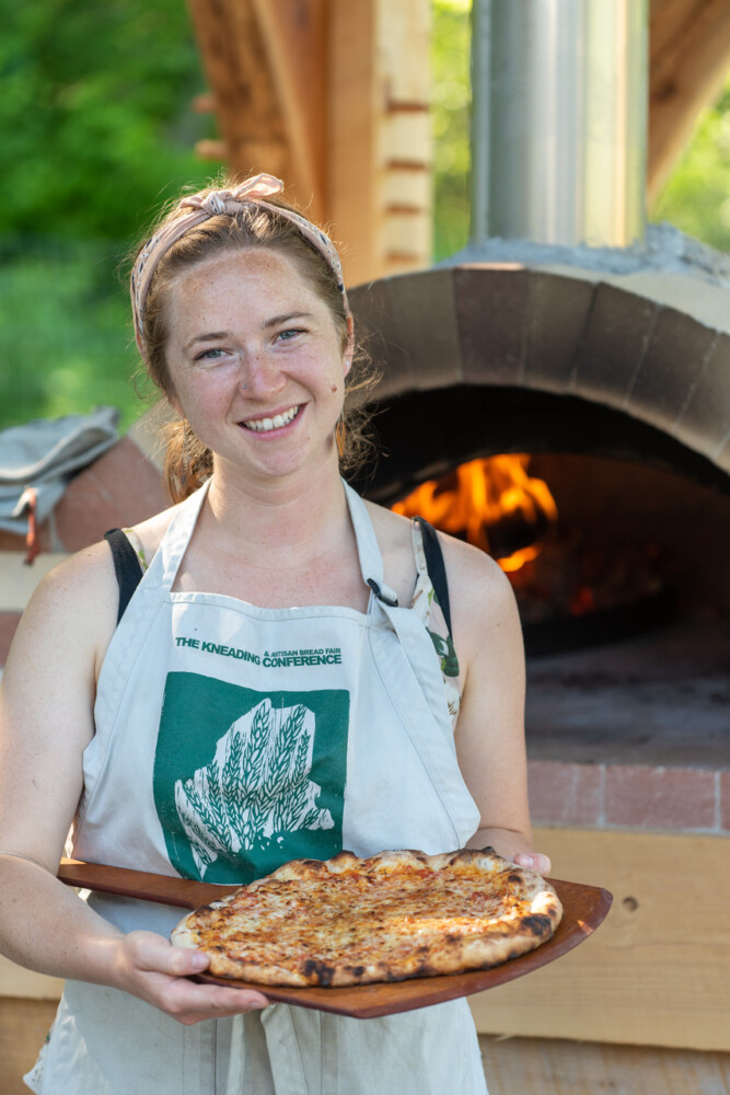 Jayne Pearson holds an earth-oven baked pizza after a workshop at the Alan Day Community Garden this summer. photo by Jesse Pearson Jesse Cottingham