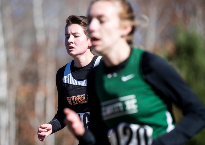 WATERVILLE — If Olivia Tiner was even the slightest bit exhausted after winning the Kennebec Valley Athletic Conference Class B girls cross country title, she didn’t show it. Moments after crossing the finish line at Quarry Road Trails, the Winslow High School senior stood near it, cheering on every other runner as they approached the end of the race.