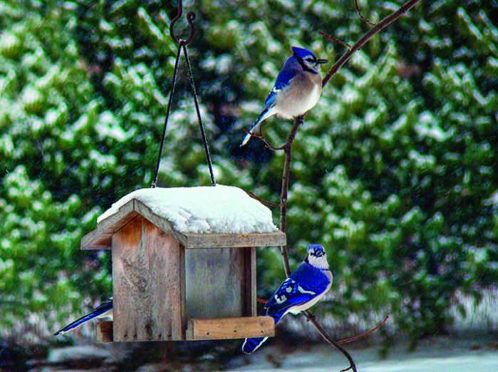 •American goldfinches: These birds are sometimes called the “wild canary” of the Americas. They have distinctive yellow plumage that fades in winter to a palette of buff, brown and gray. They’re small seed-eating birds that often travel in flocks. Birds may need a little help surviving in the winter. Keep fresh, unfrozen water around and supplement food scavenged with peanut butter, suet and nuts. Brush piles, roost boxes or birdhouses can provide needed shelter.