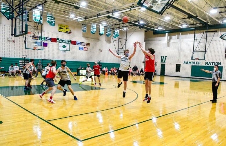“They’re really quick, and they’ve definitely got a lot of skill. … They can shoot the ball well, they run the ball well,” said Winthrop’s Noah Grube, who led the Ramblers with 18 points. “It’s always good to play up competition, you love to play bigger schools, especially us. We feel like we can compete with anyone in the state, this program, because we work hard and we play defense. … It’s good to play a bigger school and test ourselves.”